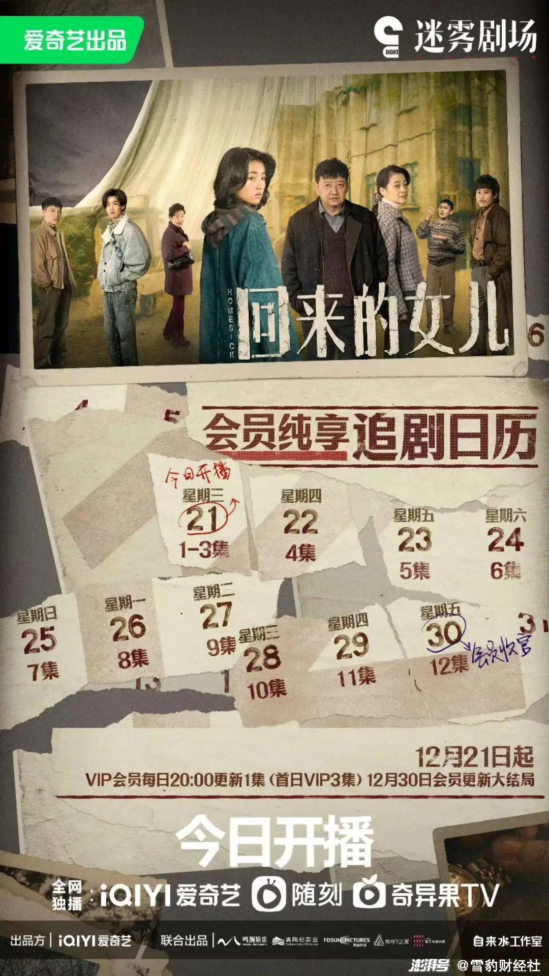 12月21日,爱奇艺“迷雾剧场”新剧《回来的女儿》开播,当天股价一度涨超22%。有网友戏称,这是“回来的女儿,回来的股价”。