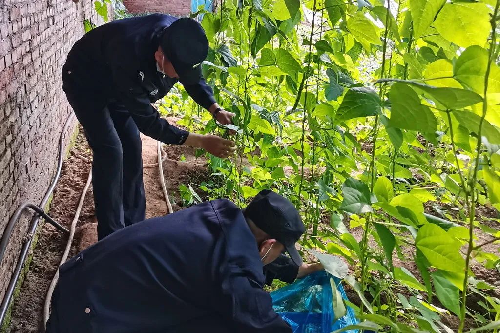 4月14日,在执行局的带领下,队内8名法警前往不同地点开展强制腾退工作。在腾退过程中,了解到被执行人王某的大棚中仍有大量豆角未采摘完毕,执行法警不忍看到当事人辛苦耕种的豆角随着扬起的风沙而浪费掉,便挽起袖口、抻起裤腿共同帮助被执行人王某采摘豆角,采摘过程很漫长,但每一次弯腰和每一次交谈,都化解了被执行人心中的不满,也为被执行人腾退不及时挽回了经济损失。历时一天的努力,4起强制腾退大棚案件的强制执行工作获得圆满成功。