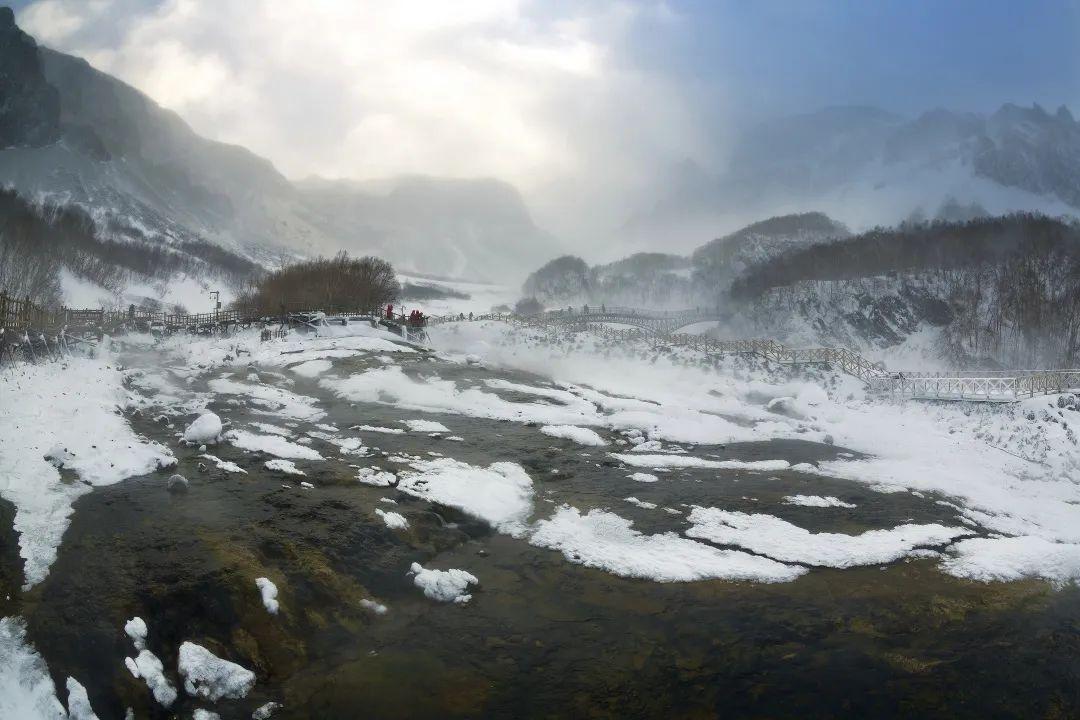 还会前往被誉为“长白山第一泉”的聚龙温泉群,看几十处泉眼在冰天雪地间,腾起袅袅热汽,走进早已结冰的绿渊潭,看冰瀑倒悬,湖面闪烁……