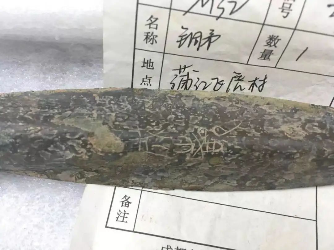 这件铜矛于2016年底出土自成都蒲江飞虎村,其最特殊的,便是上面两个古雅的篆字“成都”,这也是迄今为止成都地区出土的唯一一件刻有这座城市名字的青铜矛。