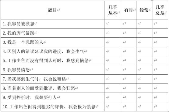 TAS特质愤怒量表在研究中被广泛地单独作为测量特质愤怒水平的评估工具,适用于16 ~ 19 岁的青少年、成年人以及精神病患者。量表:TAS特质愤怒量表