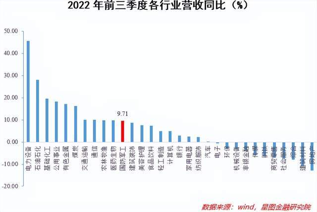 不过从基本面上看,军工行业着实算得上优秀。Wind数据显示,2022年前三个季度,国防军工的营收和归母净利润均实现了正增长,分别为9.71%和6.80%,在申万一级31个行业中均排在第11位,而近期市场大热的房地产、商贸零售等板块的业绩皆不甚理想。考虑到今年以来海内外各种错综复杂的形势及其带来的负面冲击,可以认为军工行业具有较强的经营韧性和抗风险能力。