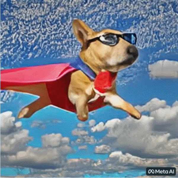 该技术旨在实现文本到视频生成,仅用几个单词或几行文本就能生成独一无二的视频。如下图为一只狗穿着超级英雄的衣服,披着红色的斗篷,在天空中飞翔: