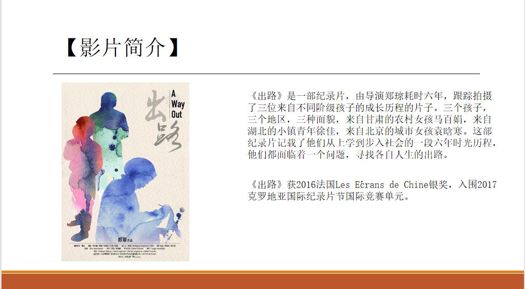 最后,我以纪录片《出路》的作品解读来结束我们今天的电影讲堂活动。纪录片的故事还有很多很多……郑