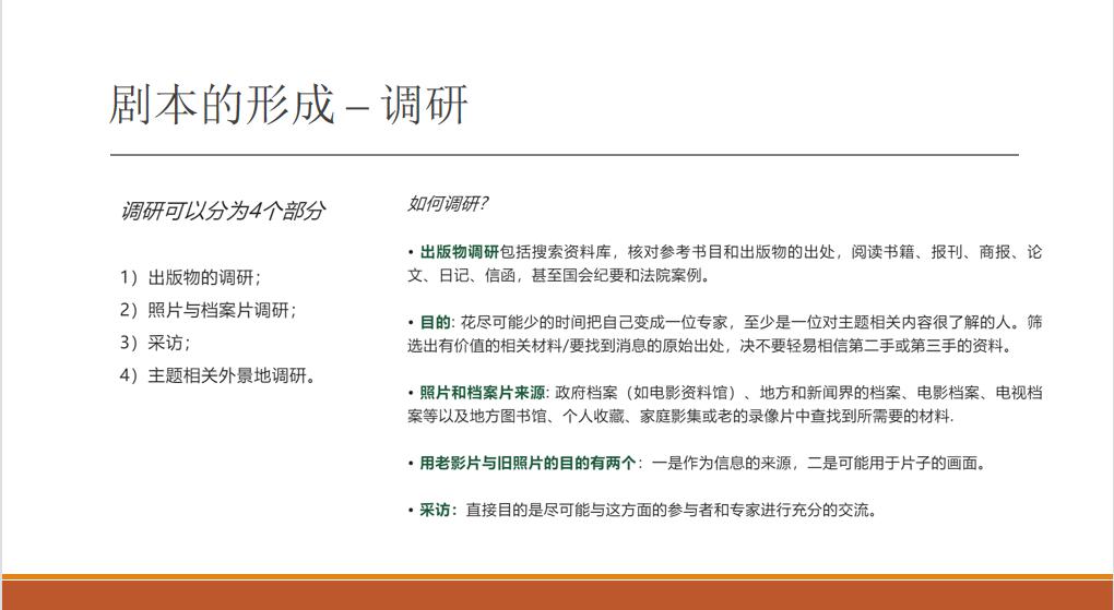 我们首先要完成的是剧本,而剧本的形成需要前期做大量调研的工作。