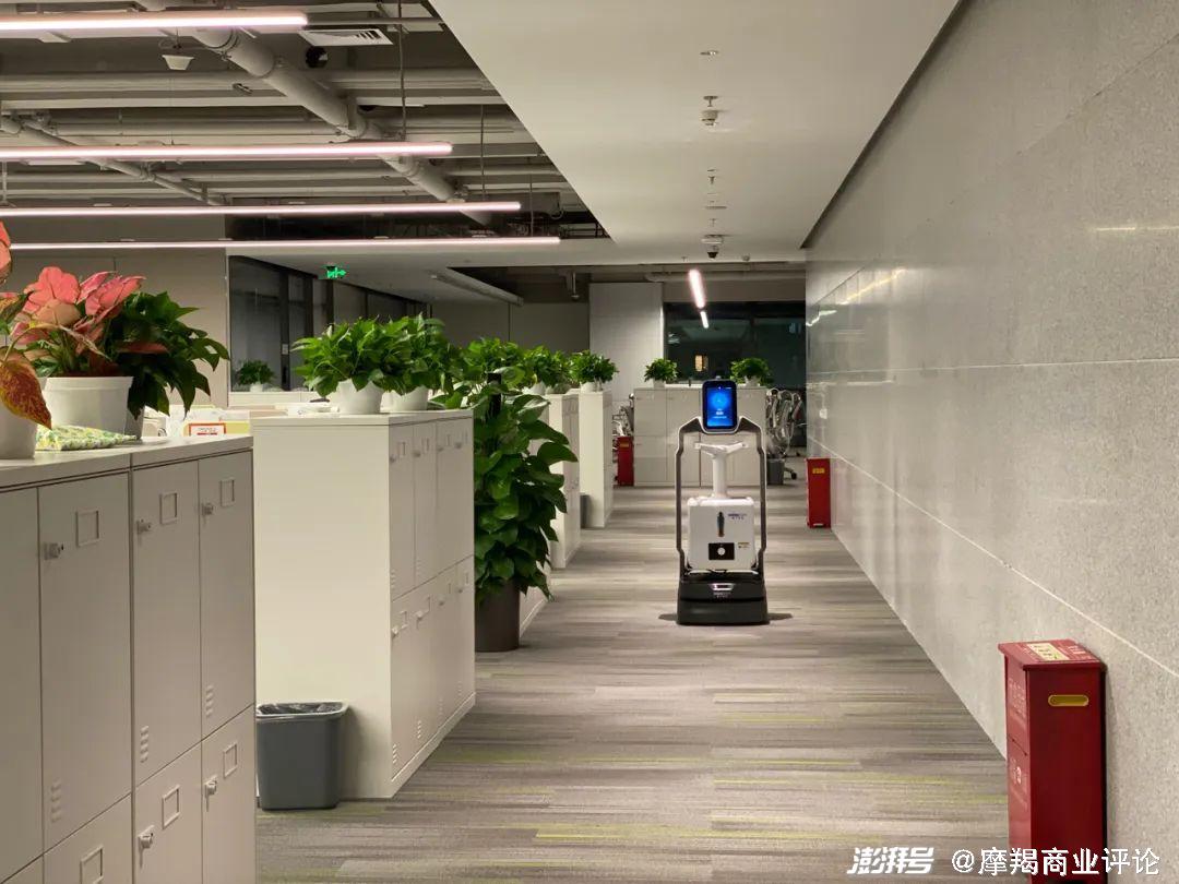 再如在常态化防疫场景中,猎户星空消杀机器人消毒豹,已经在多处办公楼宇中投入使用,其可以有效替代人工进行大面积、长时间、重复性的消杀工作。