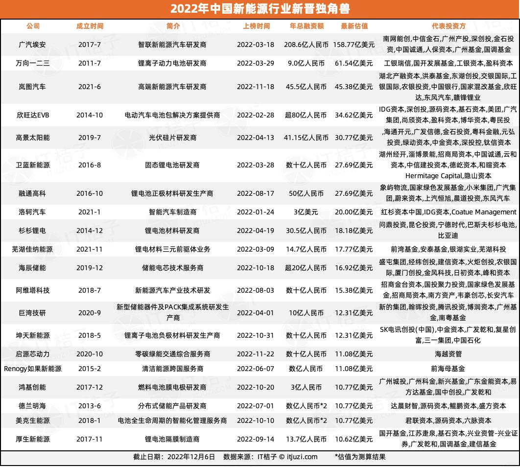 2022年新能源诞生20家独角兽 电池领域占9家|年终观察
