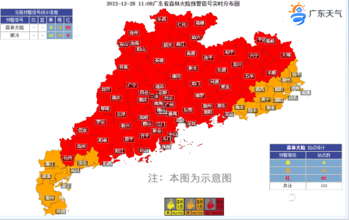 另外,截至28日11时,全省森林火险预警信号正在生效,其中共有82个市县发布了森林火险红色预警信号。