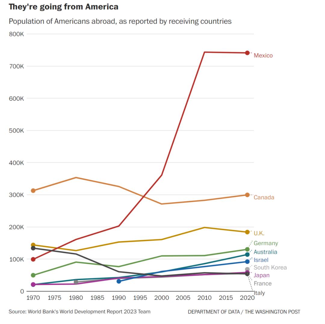 华盛顿邮报的数据报道分析了美国海外侨民的情况,结论很有趣。