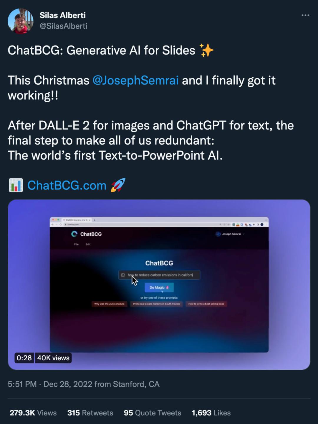 ChatBCG 共有两位作者,SilasAlberti 是斯坦福大学机器学习专业的博士生,JosephSemrai 是斯坦福大学计算机系的学生。