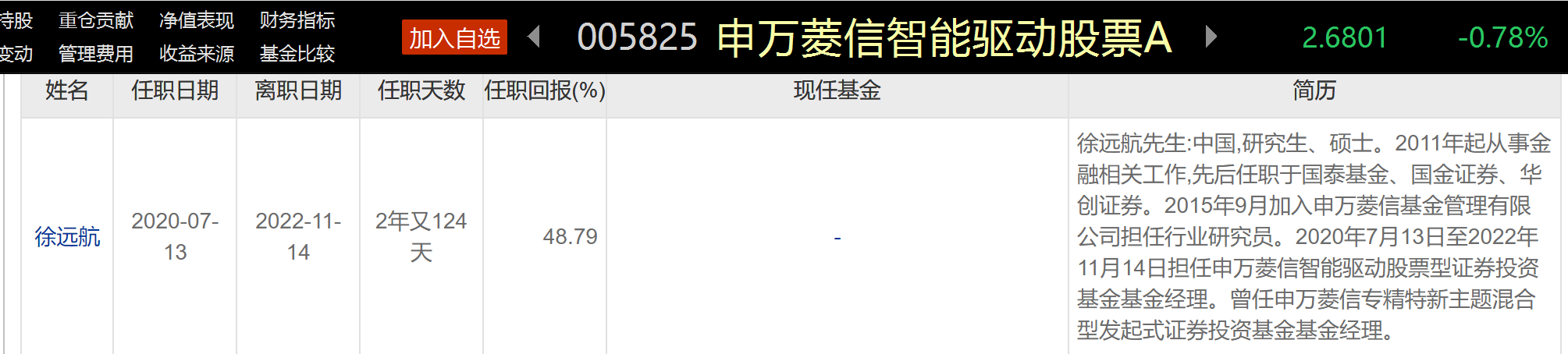 另外,经记者查询发现,涉事基金申万菱信智能驱动基金的现任基金经理已另有其人。