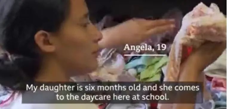 今年6月在课间接受媒体采访时,海伦仍旧是那个穿着黑色 T 恤和淡粉色短裤的害羞的黑眼睛少女。但在她书本和日记旁边的背包里,放着她女儿珍妮的尿布和婴儿衣服,珍妮现在八个月大了。“过去只有我自己,现在我必须考虑我和我的孩子,”她说。