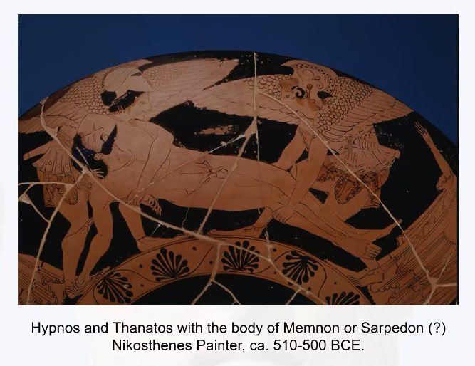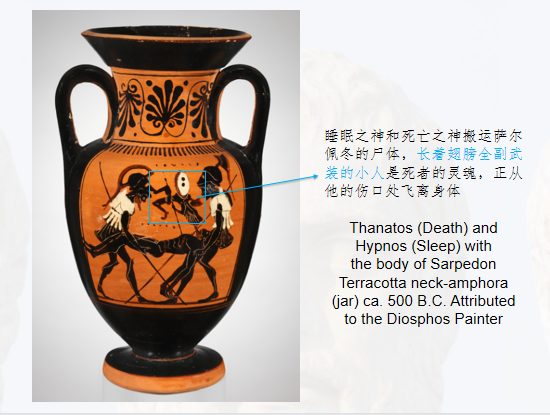 下一幅图比较重要,在这幅图中,无法确认图中的人物究竟是门农还是萨尔佩冬,这证明二者形象可能存在一定的转化和过渡,即门农逐渐转变为萨尔佩冬。