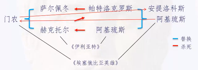 首先是《伊利亚特》对于失传史诗《埃塞俄比亚英雄》的运用。陈老师指出,萨尔佩冬与赫克托尔的原型可能是失传史诗《埃塞俄比亚英雄》(Aethiopis)中的门农(Memnon),而这部史诗中阿基琉斯对阵门农的情节被荷马改编成帕特洛克罗斯对阵萨尔佩冬和阿基琉斯对阵赫克托尔的情节。