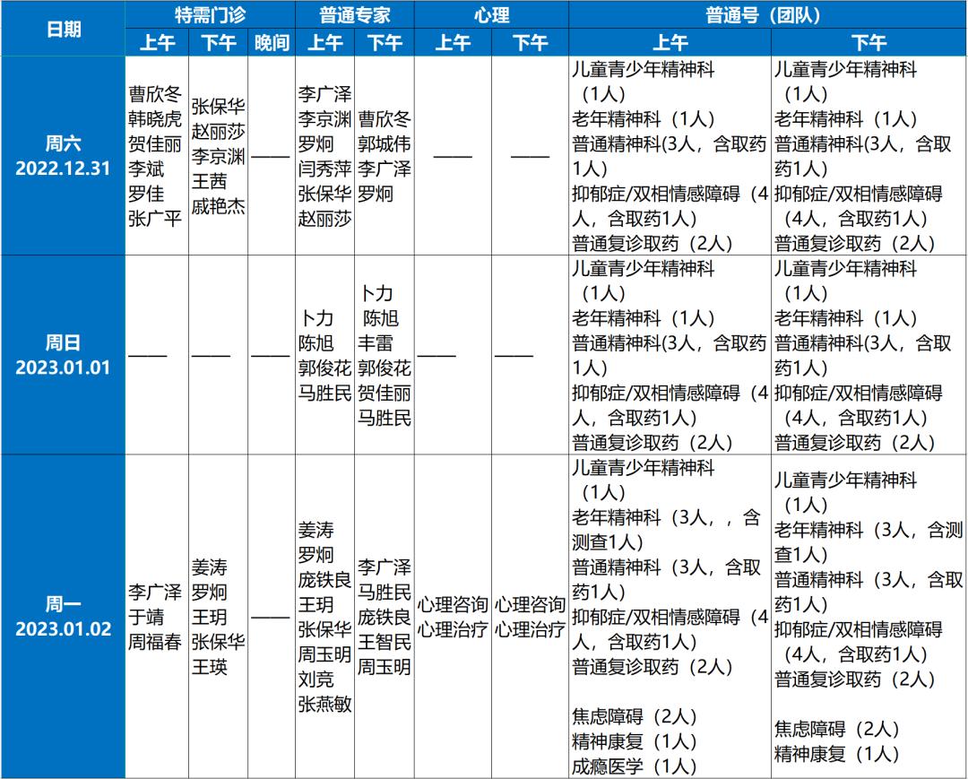 北京胸科医院2023年元旦假期期间具体出诊情况: