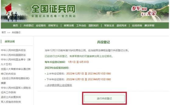 2023年兵役登记工作于2023年1月1日开始