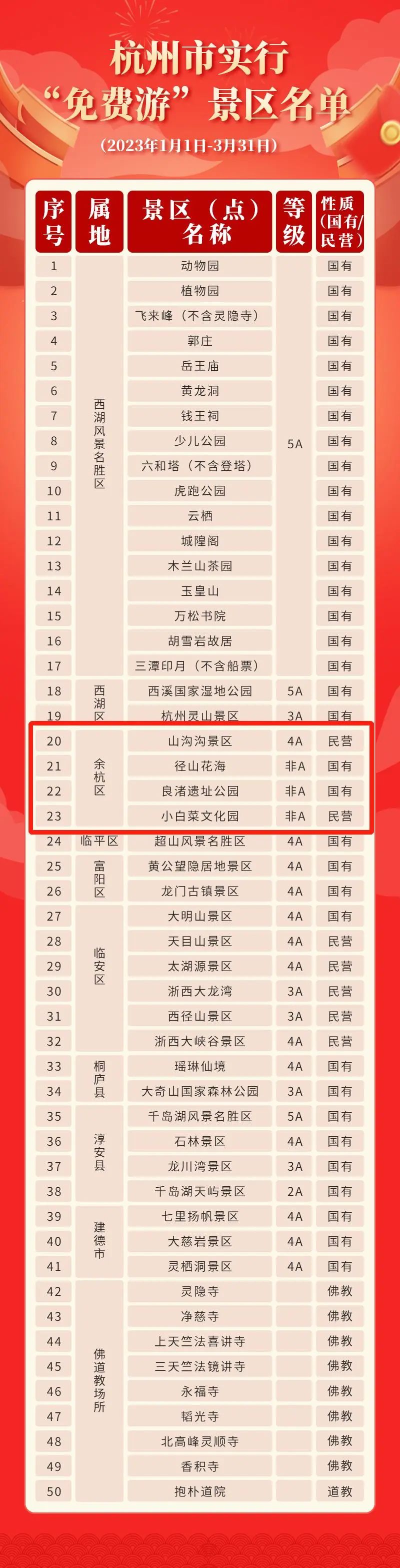 ● 好消息!@余杭人,未来两年继续免费!● 迈进新一年,听听12位余杭奋斗者的心声!● 今天起,这些新规将影响你的生活!来源 | 区融媒体中心、区文化和广电旅游体育局原标题:《持续至3月底!余杭4个景区元旦起免门票!浓浓年味儿等你来寻!》