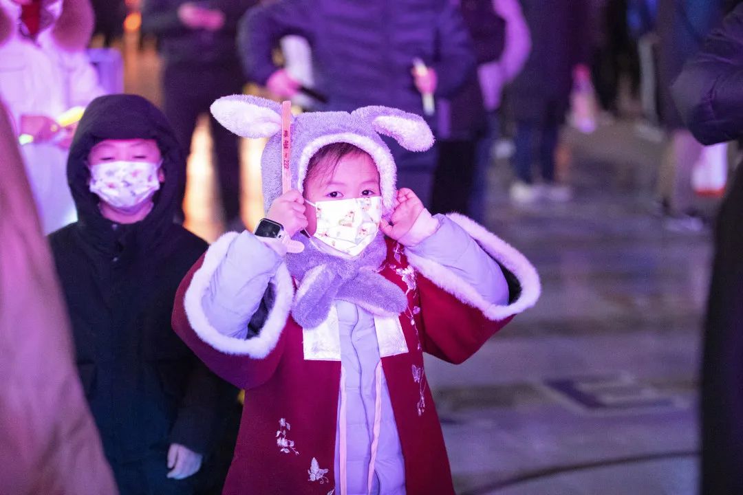 看朋友发朋友圈,说是这边有花灯,就特意过来看一下,印象最深刻的就是几个大兔子灯。我是新杭州人,希望今年能过一个好年,和家人团聚。——游客李鹏