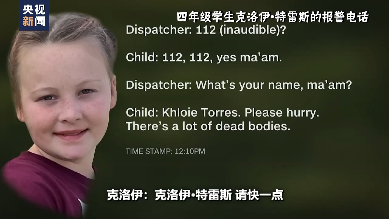 这则报警电话的拨出时间是2022年5月24日中午12时10分,当时,大批警察距克洛伊所在的112教室仅有几英里的距离,但由于上级的命令迟迟未到,全副武装的警察没有一人展开施救。