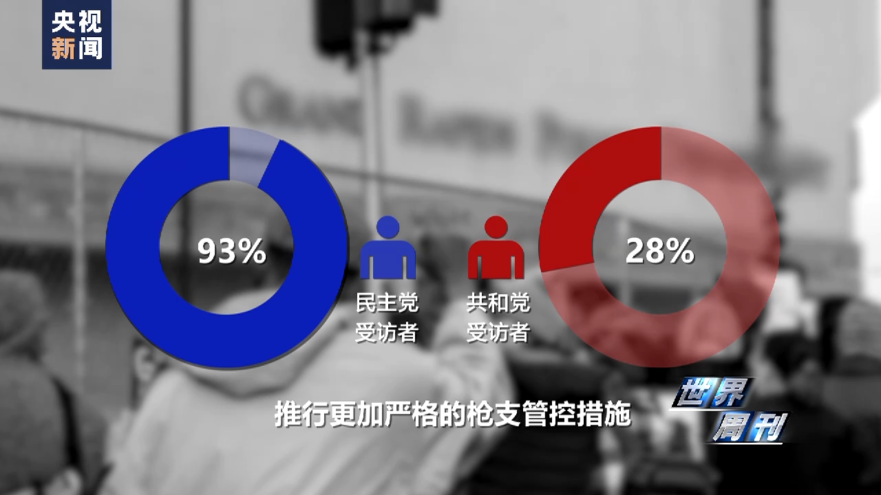 在民主党受访者中,高达93%的民众希望代表他们的国会议员推行更加严格的枪支管控措施,而在共和党受访者中,这一比率仅为28%;另外,高达83%的民主党受访者希望国会议员提案禁售攻击型武器,而在共和党人中,持这种意见的比例只有约34%。