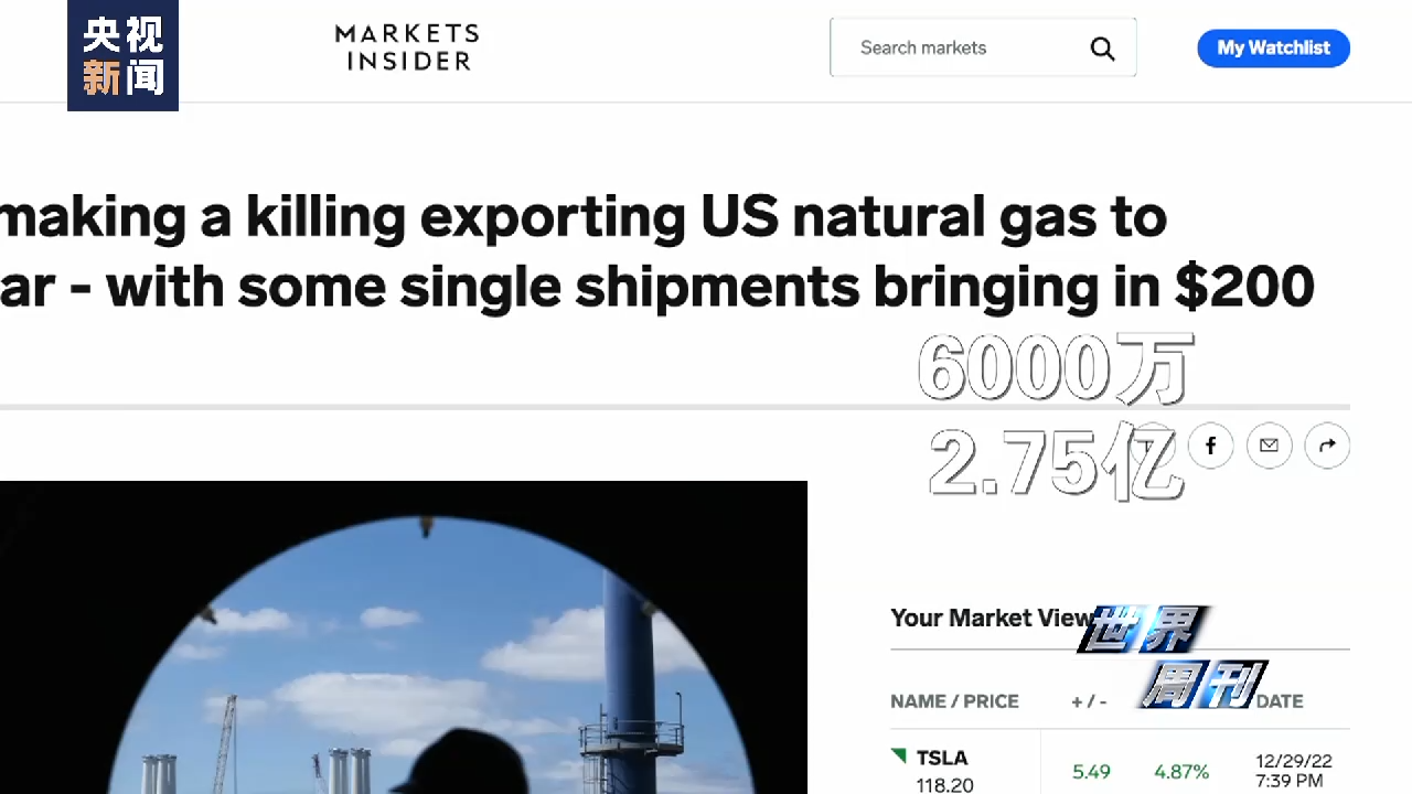 据美国财经媒体“商业内幕”披露,美国能源商以大约6000万美元的价格将大型运输船装满液化天然气,运到欧洲后,价格飙升至2.75亿美元,一趟下来就能赚取上亿美元的暴利。