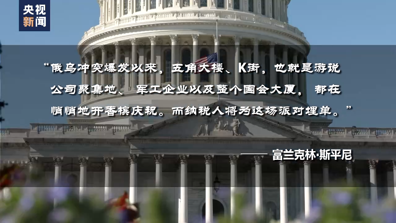 曾在美国国防部部长办公室工作26年的军事分析师富兰克林·斯平尼写道:“俄乌冲突爆发以来,五角大楼、K街,也就是游说公司聚集地、军工企业以及整个国会大厦,都在悄悄地开香槟庆祝。而纳税人将为这场派对埋单。”