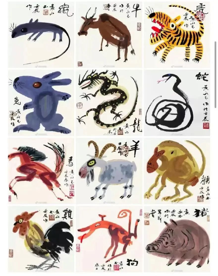 除了兔子,其他动物在他笔下也都是诡异抽象风。