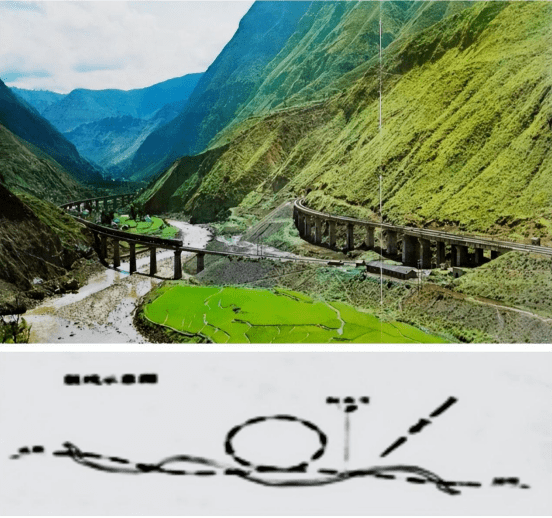 法拉螺旋形展线(图片来自《成昆铁路大会战纪实》)