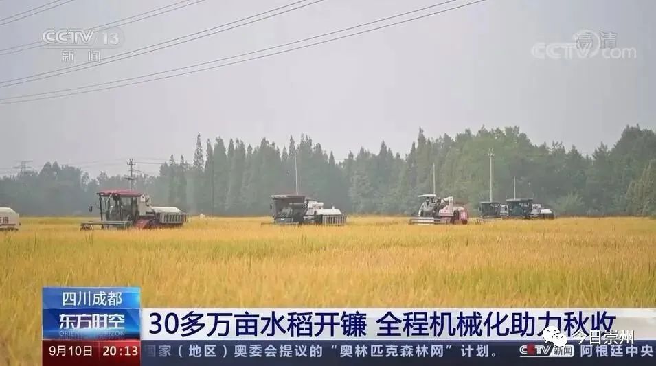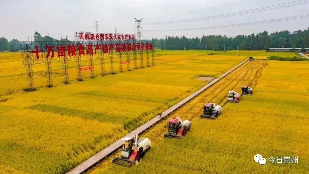 崇州大力推进天府粮仓核心示范区建设,做优做强粮食“研产购储加销”全产业链,保障粮食安全。2022年,全市水稻种植面积31.82万亩,产量17.5万吨,小麦播种面积10.5万亩,油菜播种面积18.7万亩。崇州的丰收景象和全程机械化收割盛况,受到了央视关注。