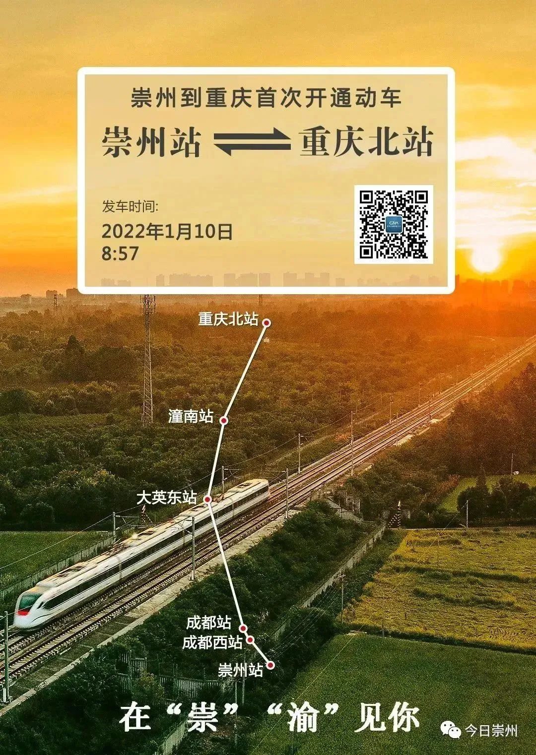 1月10日,崇州到重庆直达动车开通,崇州与重庆之间的行程时间缩短为3小时。