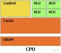 GPU几乎主要由计算单元ALU组成,仅有少量的控制单元和存储单元。