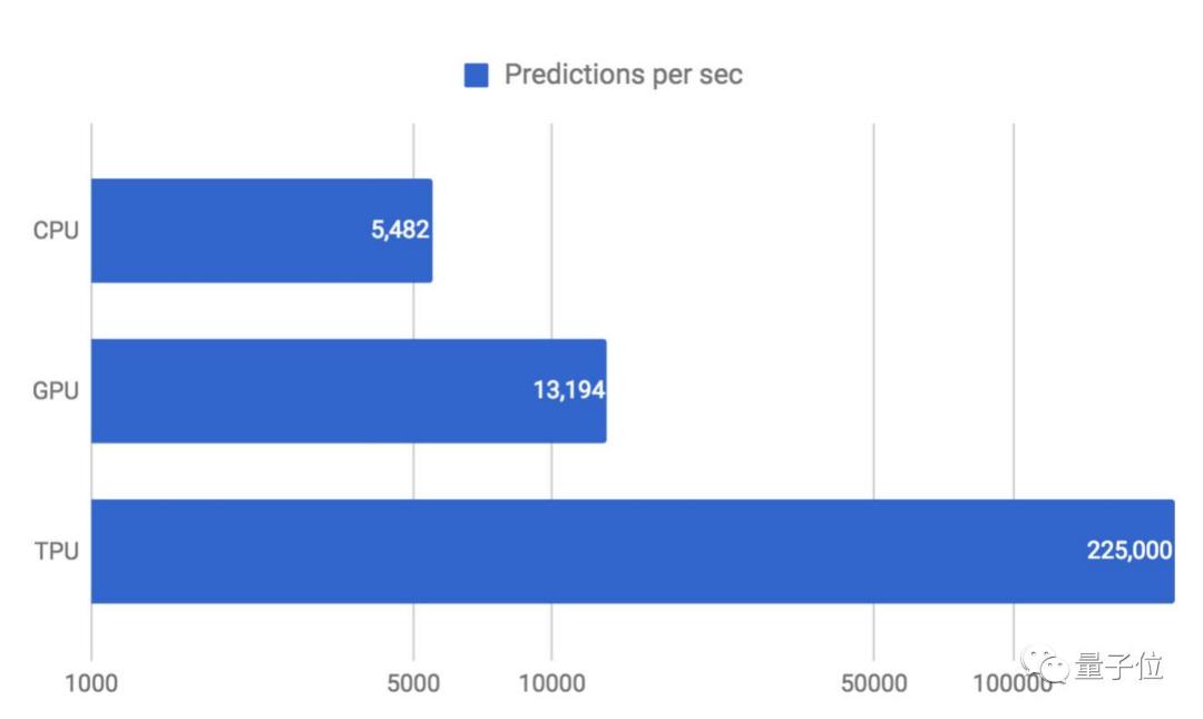 得益于用量化技术进行8位整数运算、脉动阵列、基于复杂指令集(CISC)等设计,它与同期的CPU和GPU相比(英特尔至强E5-2699 v3与Tesla K80 GPU),可以提供大约15-30倍的性能提升。