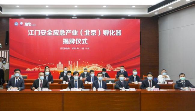 △揭牌仪式北京现场。3个月后,江门安全应急产业(北京)孵化器在北京、江门两地同步启用,让“双通道、双空间”的设想落地落实。江门高新区党工委委员、管委会副主任刘宏杰介绍,孵化器定位为江门安全应急产业综合示范基地在北京的优质安全应急产业资源对接平台、安全应急产业孵化平台,未来将建设成为安全应急产业策源地、安全应急产业高层次人才创新中心、国内一流国际知名的人才智库。