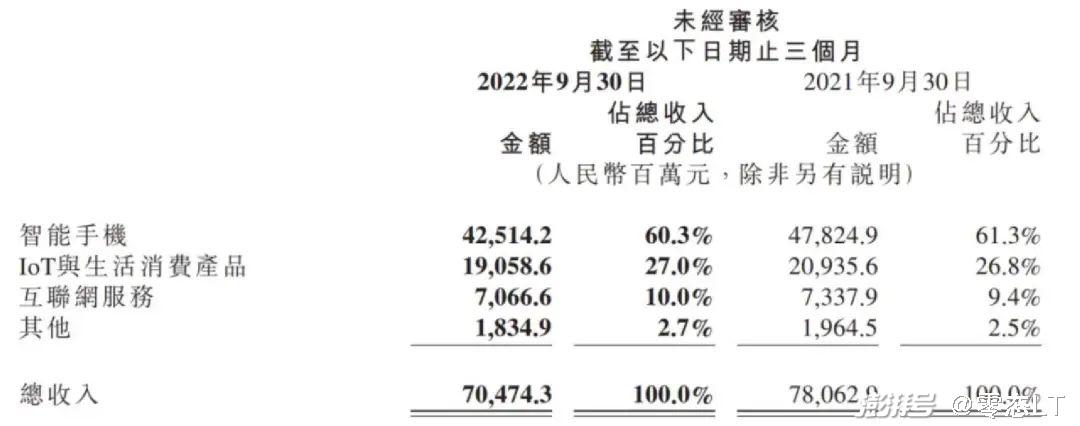 在小米手机业务下滑的影响下,小米整体利润遭到了影响。