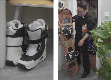 ▲热爱滑雪,热爱生活他喜欢滑雪,上次出门的雪鞋还没来得及收好,前几天夜里,他还对着电视上的教程,学了一个晚上。