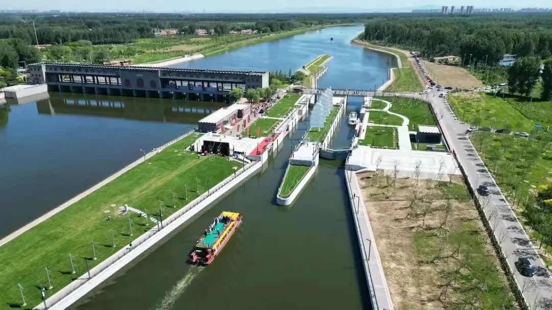 京杭大运河杨洼船闸清波荡漾北运河,一水连通京津冀。2022年6月24日,大运河京冀段全线62公里实现互联互通试验性通航。北运河重现古运河上漕运兴盛之景,“蓝绿交织、水城共融”的美丽愿景正变为现实。