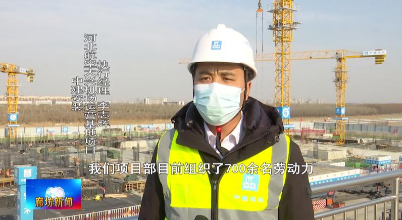 中建安装河北航空大兴机场运营基地项目执行经理李志辉:我们项目部目前组织了700余名劳动力全力保障1月10日地下主体结构封顶节点,为后续地上主体结构施工及6月30日主体结构封顶创造条件。建成后河北航空将以石家庄正定国际机场、北京大兴国际机场“双核心”运营,助力廊坊临空经济区发展。