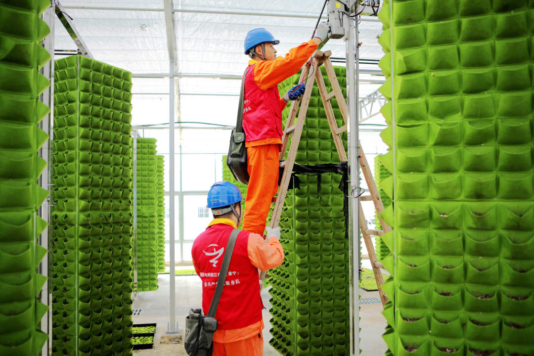 ▲国网浙江电力员工在毛垟乡苔藓种植基地检查用电安全情况。