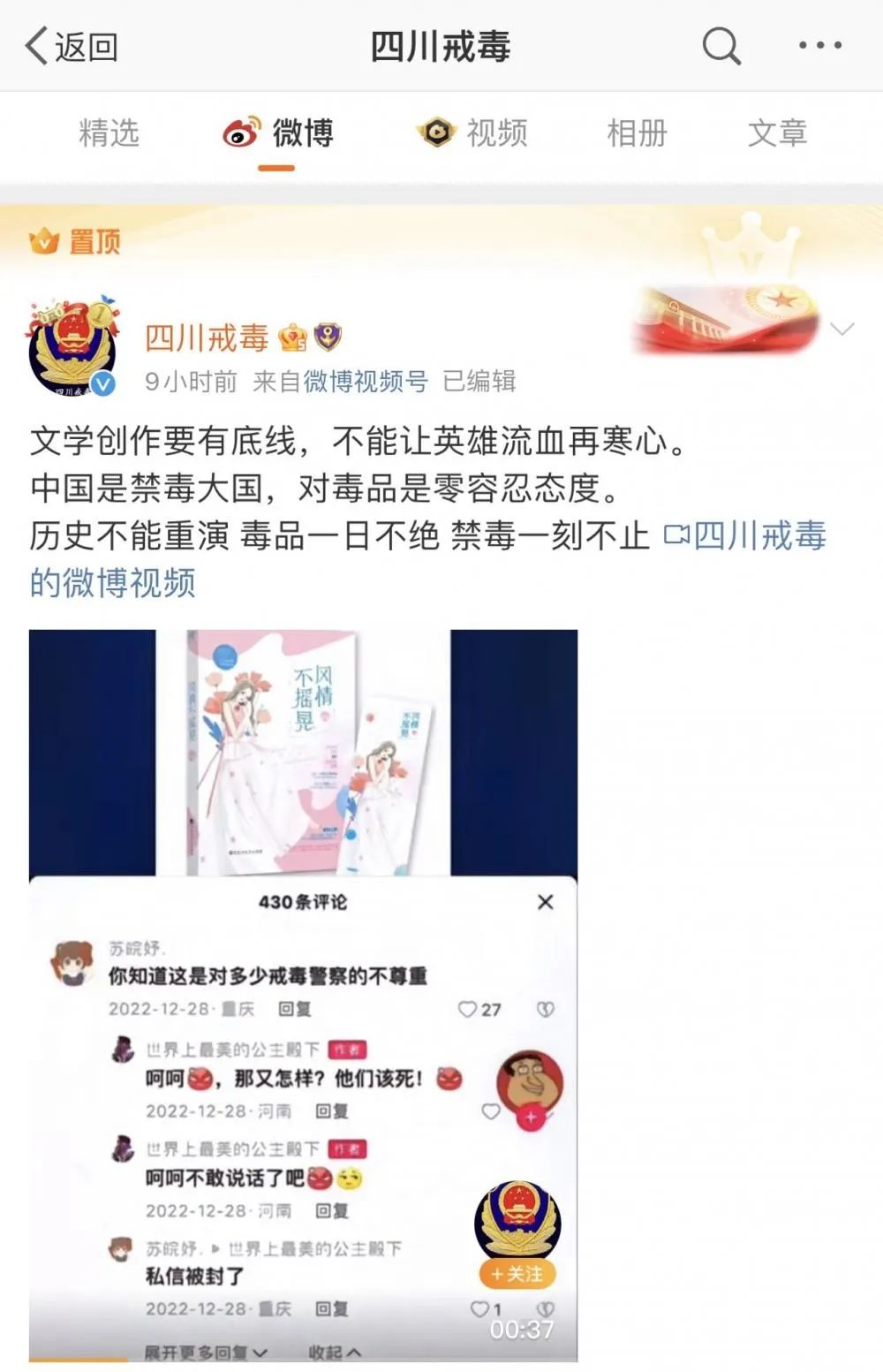 四川戒毒官微点名批评网络小说美化毒贩,出版社拒回应