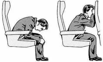 五、发生飞机准备迫降时,不应该坐靠在位置上,而是应该双手交叉支撑在前排座位上,然后把头部放在手上,脸向下,头要尽量低些,并在飞机着陆之前一直保持这个姿势。