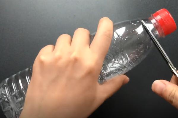 沿塑料瓶的瓶口和瓶底两处,约4-5cm左右,分别裁剪下来。