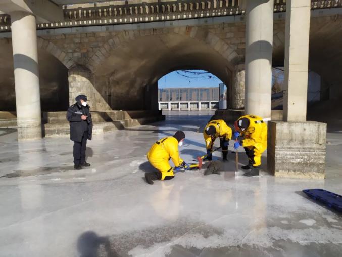 然而,由于被困时间过久,被困老人身体与河道接触面的冰层过厚无法破拆,消防员随后尝试用热水化冰,仍然没有效果。最终,消防员决定采取水枪出水,用流动水化冰的方式救援。下午13时55分,被困老人最终救出。遗憾的是,经现场法医判断老人已无生命体征,消防员交接给民警和家属后归队返回。