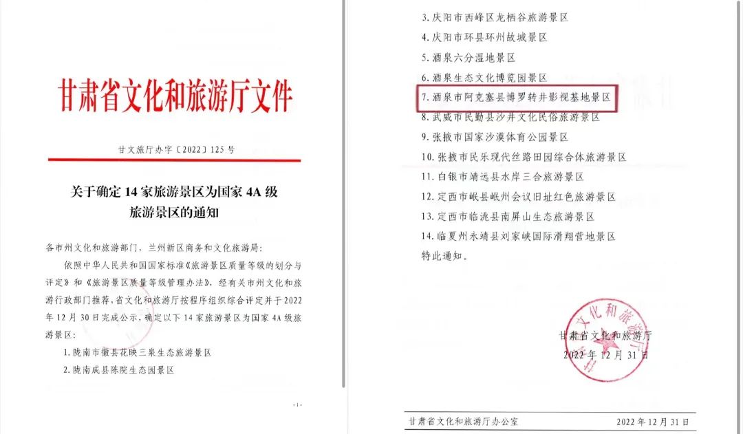 喜报|阿克塞博罗转井影视基地荣获国家4A级旅游景区