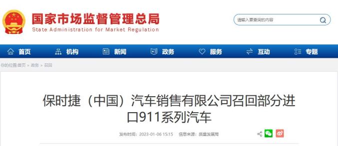 保时捷(中国)汽车销售有限公司召回部分进口911系列汽车