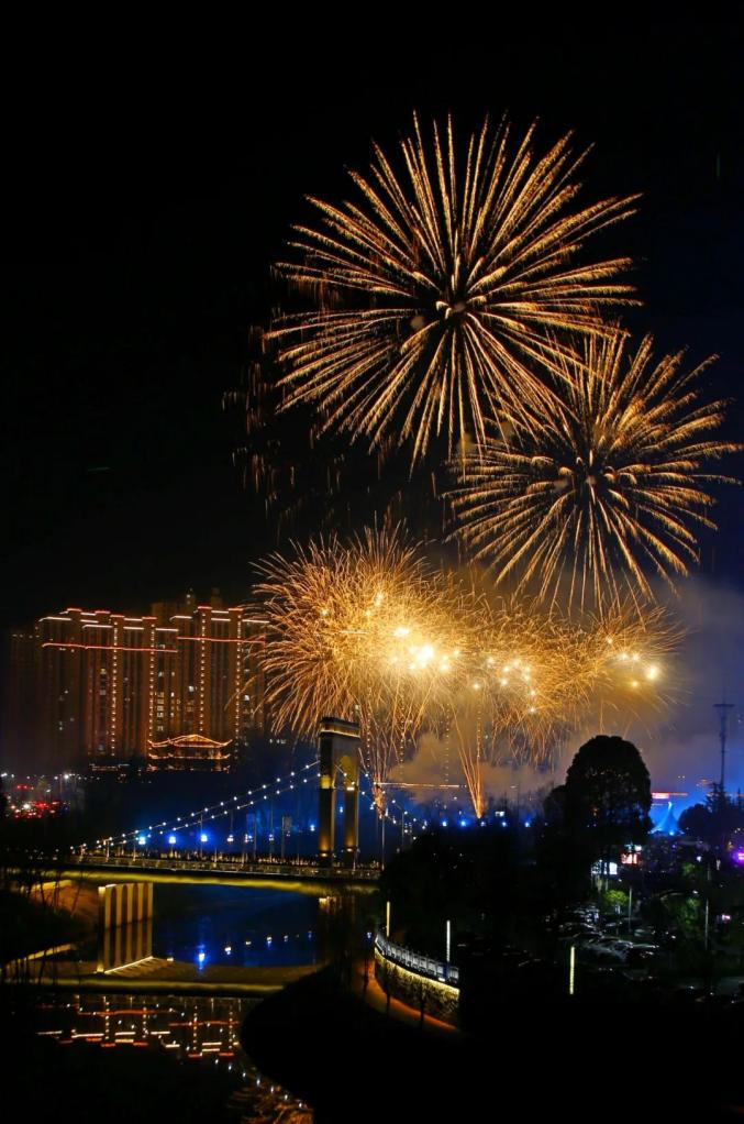 爆竹声声,欢唱人们的美好祝福;礼花闪闪,绽放新年的梦想憧憬;河光舞动,映照利川繁荣成长,展现了这座未来之城开放创新、智慧生态、文旅融合、宜业宜居的独特魅力。