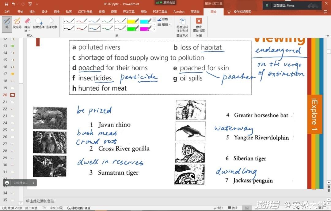 《大学英语》作为面向全校非英语专业学生开设的公共基础课,覆盖面宽,影响面广,而外语学习具有特殊性,需要将大量目标语言的输入与创造性的、有目的的语言输出紧密结合,如何在线上教学中保证语言教学的效果?蒋玮老师在《大学英语(A)III》的课程中对此进行了一些尝试与探索,利用QQ平台、腾讯会议和教材配套APP等网络平台,在教学活动中,面向整体,尊重个体,关注过程,注重效果。