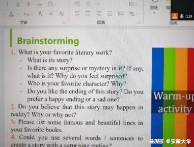 陈琛老师的《大学英语》课,以知识性、文化性、趣味性深受学生喜爱。她认为,在引导学生从线下向线上教学的切换过程中,需要不断优化线上课堂,帮助学生在混合式教学中找到学习的新方法、新体验、新动力。
