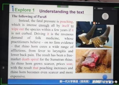除了用活动激发学生兴趣,王老师还充分利用网络精心选择合适的短片和图片,配上英文注释和问题,用充实的内容来丰富学生的知识,拓宽他们的眼界。第七单元第一课《The Planetary Killer》,介绍了苏门答腊犀牛,借此机会王老师带大家观察世界地图,一起寻找犀牛曾今的栖息地,既丰富了同学们的知识,又让大家对于苏门答腊犀牛的处境有了直观的认识。