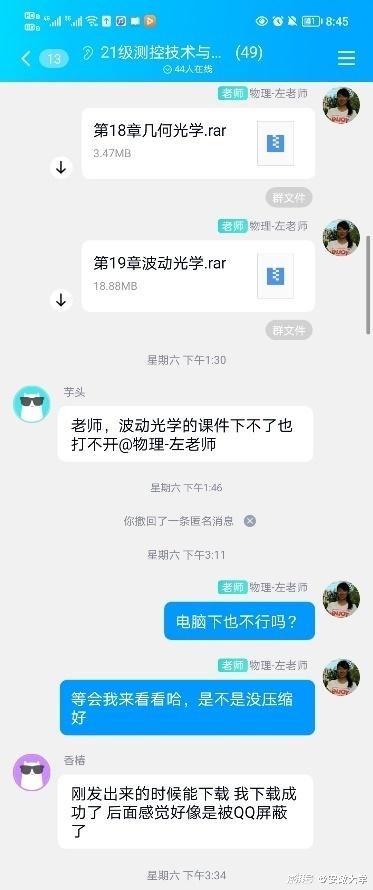 每次授课前一天,左老师都会通过班级群沟通了解学生们身体健康和心理情况,对心理有压力的同学及时疏导。考虑到线上教学实时交流的困难,授课中,经验丰富的左老师更重视在平台上与学生保持实时互动,在关键点提出问题,引导学生带着问题学习,学生积极性高,课堂氛围活跃。课后,左老师还会通过班级QQ群将整理好的课程资源分享给同学们,与同学们沟通交流,及时跟踪了解学生学习情况,掌握学习效果,尤其是因身体原因不能正常线上上课的同学,更是分发录课视频,预留一对一指导答疑环节,争取不让一个学生掉队。