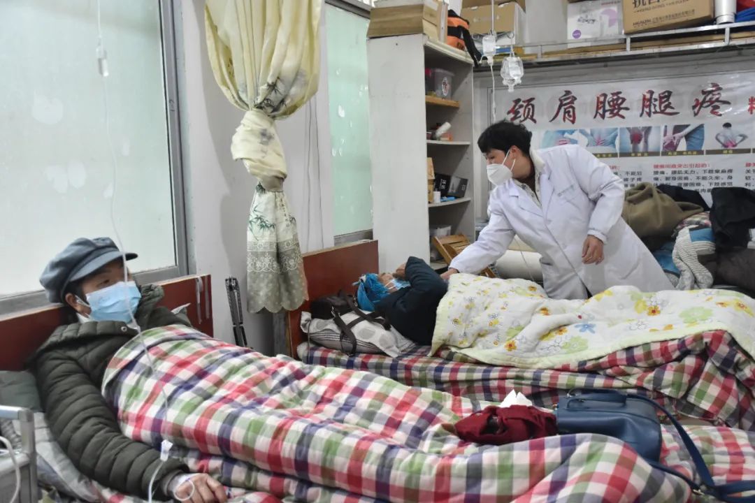 1月6日早晨,记者走进凯里市鸭塘街道四联村卫生室,文坤卫夫妻两人一直穿梭在病床、观察室与诊疗室之间,为感染新冠病毒及有类似不适症状的村民提供医疗服务。